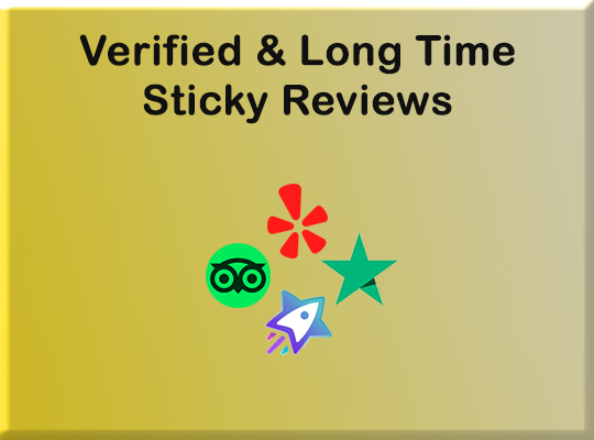 Long time sticky reviews are here available. Trustpilot, Google, Faceook, Sitejabber, Google will be sticky on your business page more than 3-5 months and Yelp Elite will be lifetime.